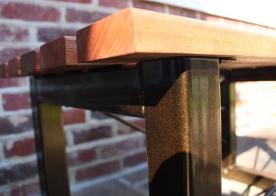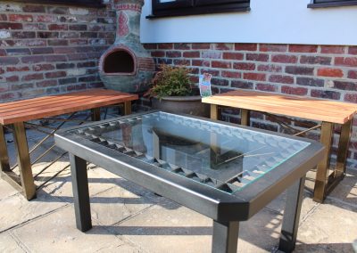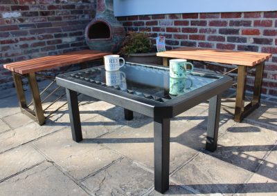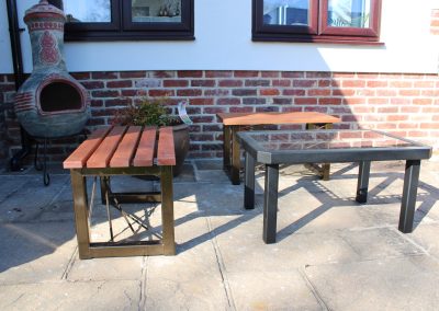 We are able to manufacture garden tables and benches to your specifications.. Various metal structures and wood finishes can compliment that special space in your garden.