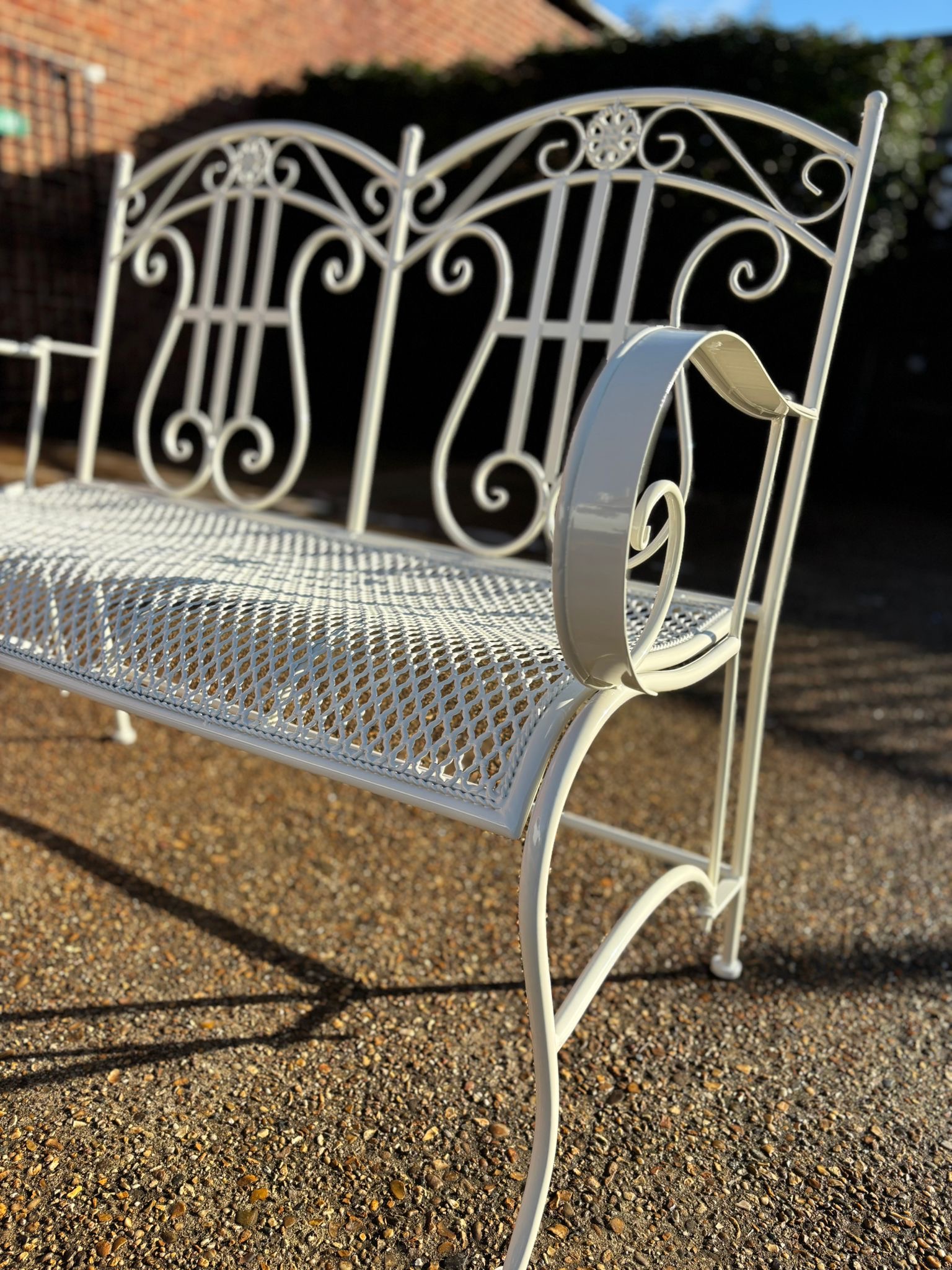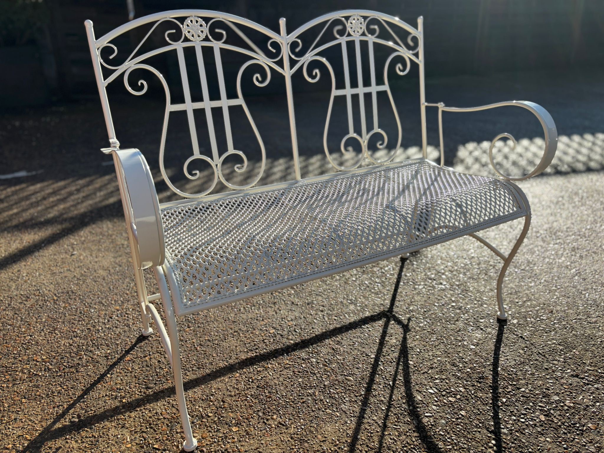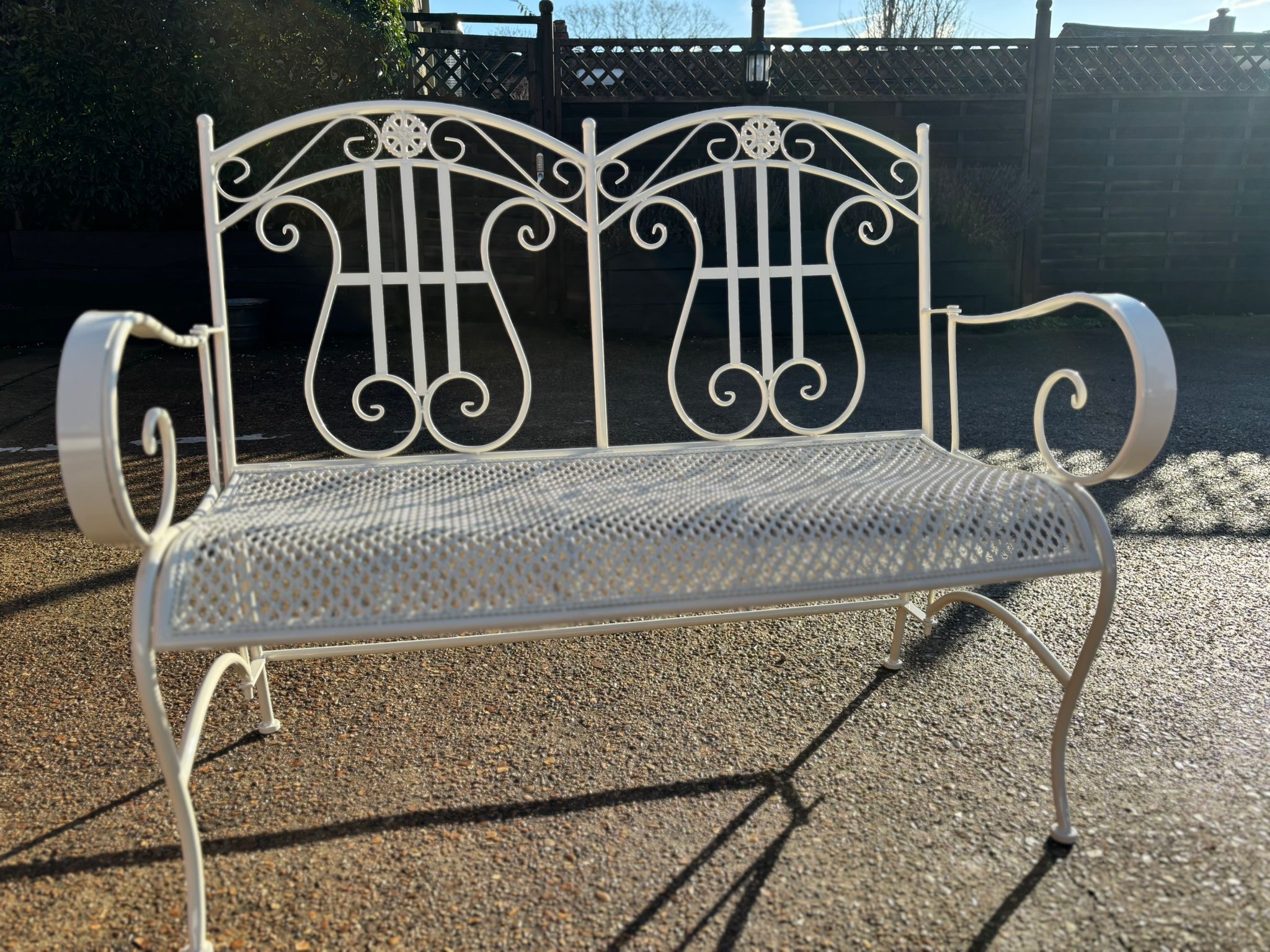 This metal garden bench has recently been restored and powder coated in our workshop…
